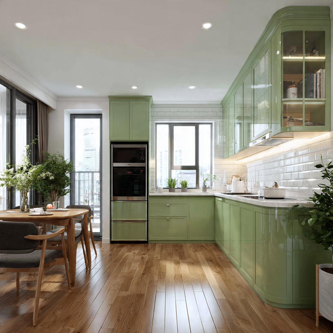 a. Tủ bếp nhựa chữ L: Phù hợp không gian nhỏ, tối ưu góc phòng.