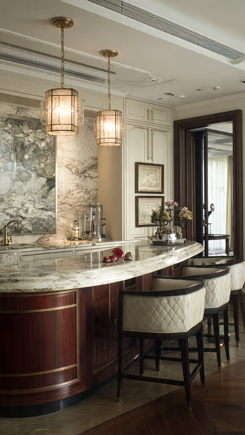 - Tích hợp bồn rửa, bếp từ, quầy bar, tạo điểm nhấn hiện đại.