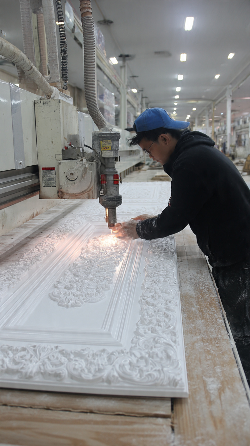 - Gia công CNC 4–5 trục: Cắt tấm nhựa PVC chính xác, đảm bảo khớp nối hoàn hảo.