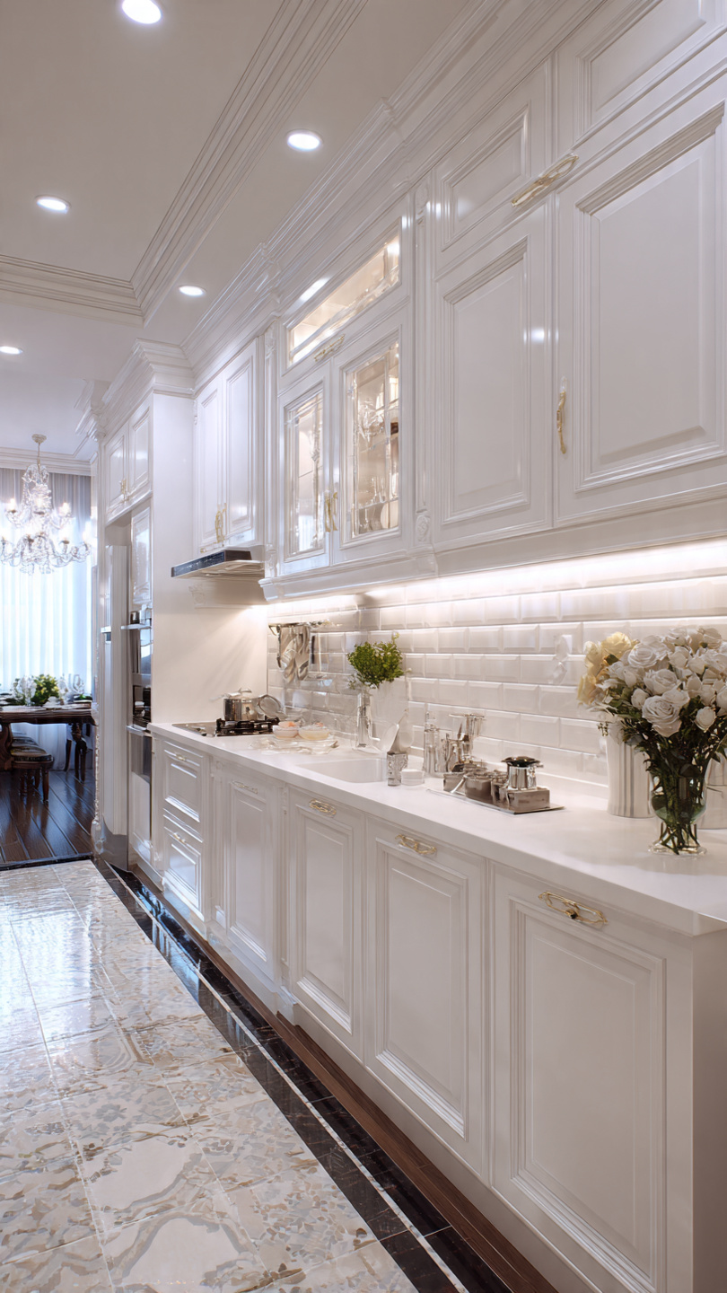 - Tạo cảm giác không gian rộng rãi: Màu trắng phản chiếu ánh sáng tốt, giúp căn bếp trông sáng hơn.