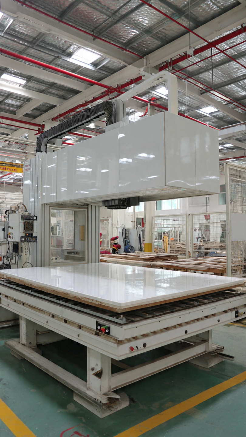 Hình 4: Máy CNC gia công tủ bếp nhựa màu trắng tại xưởng Hưng Thịnh Phát