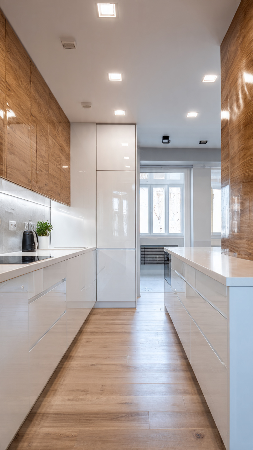 - Dành cho căn bếp nhỏ hẹp hoặc hình chữ nhật.