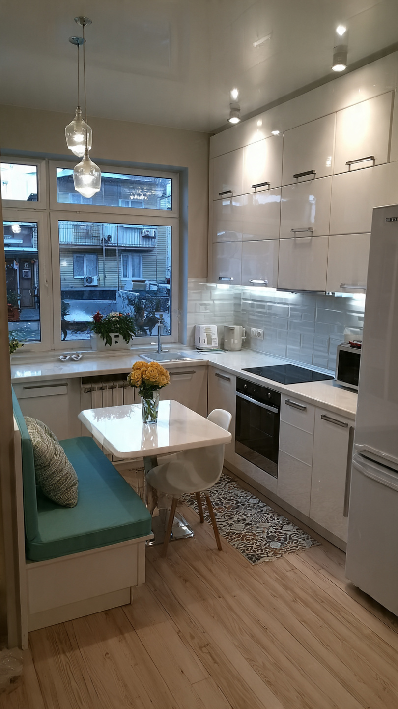 - Tủ bếp nhựa Acrylic bóng gương hiện đại