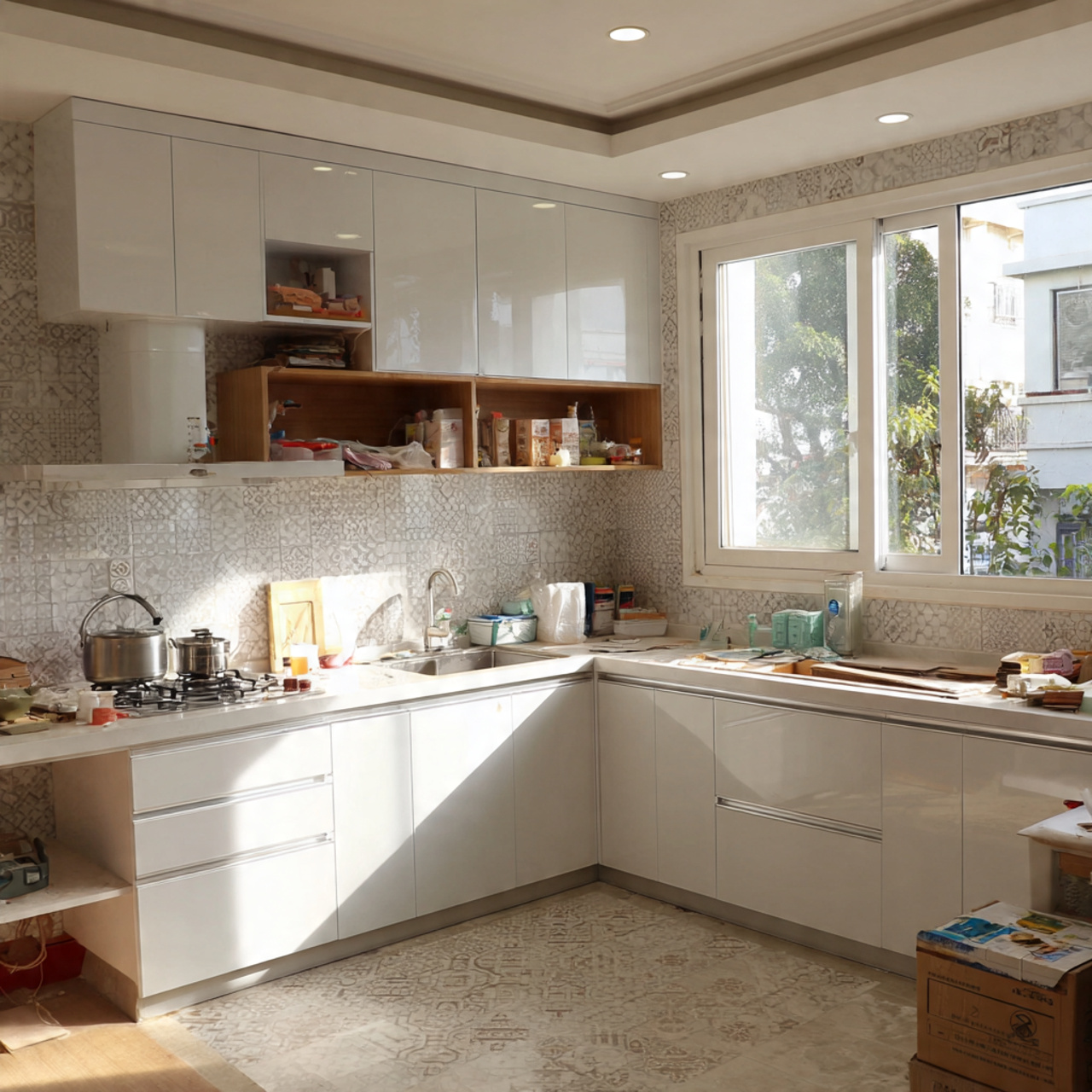 Hình 1 – Tủ bếp nhựa chữ L hiện đại, tiện nghi