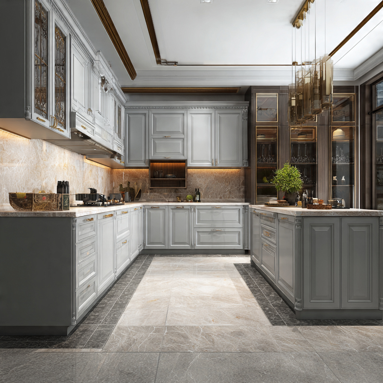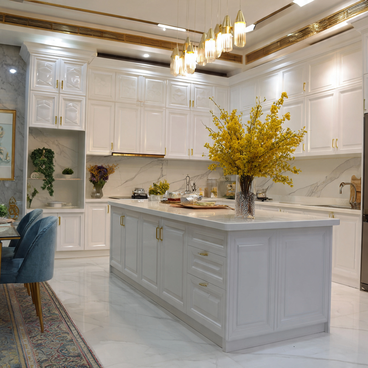 - Kiểu chữ L, chữ I, chữ U, đảo bếp