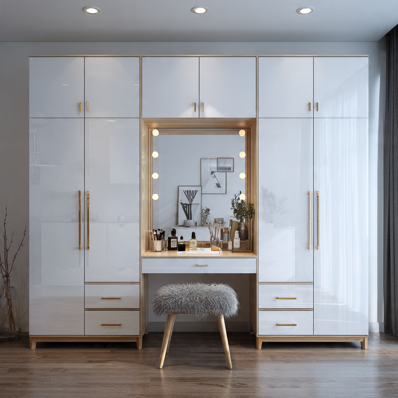 - Cánh tủ: Phủ vân gỗ hoặc trơn, có thể phối màu.