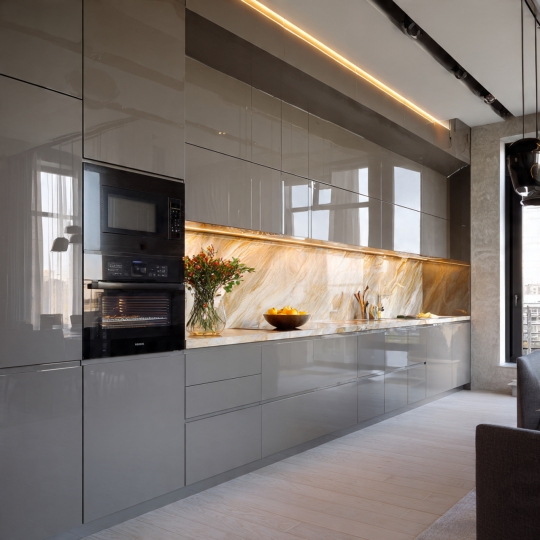 - Cánh tủ phủ Acrylic bóng gương, hiện đại